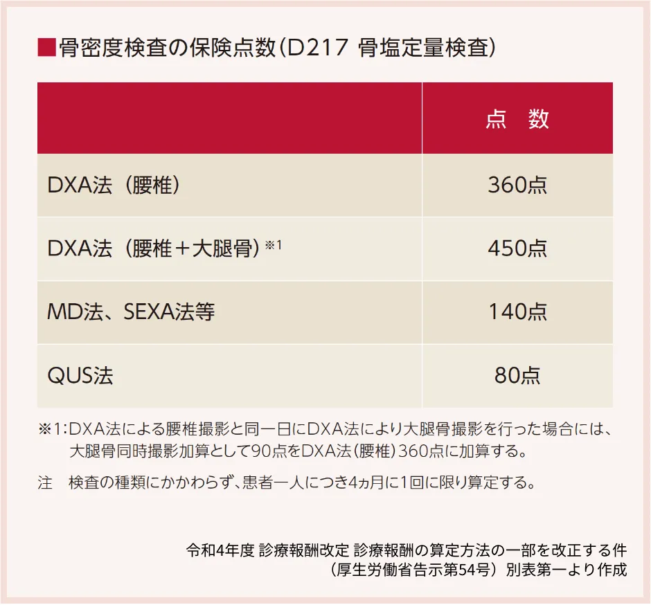その他、MD法やSEXA法、pQCT法などは140点、QUS法は80点が算定できます。