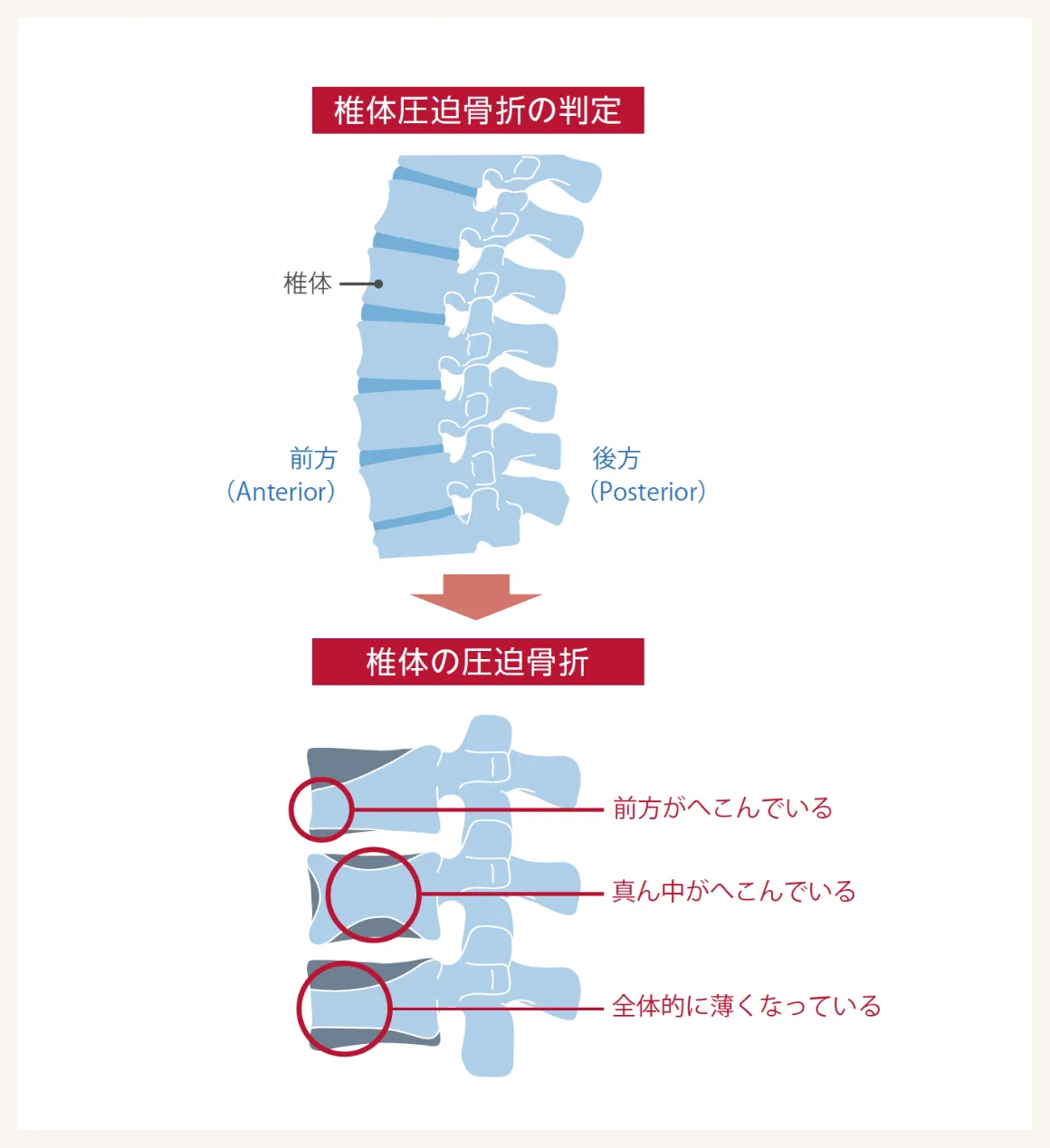 また、脆弱性骨折のなかでも椎体骨折は本人が自覚していない場合もあるため、X線検査が必要です。