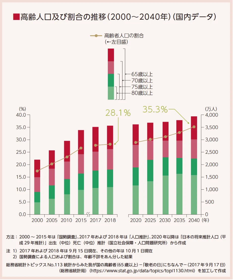 総人口に占める割合は2018年で28.1%でしたが、2040年には35.3%になると見込まれています。