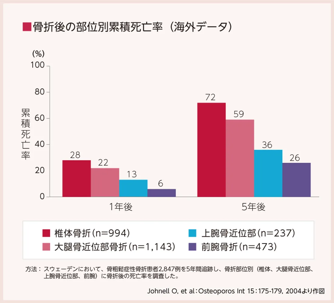 さらに、脆弱性骨折は死亡率に影響を及ぼすことが知られています。