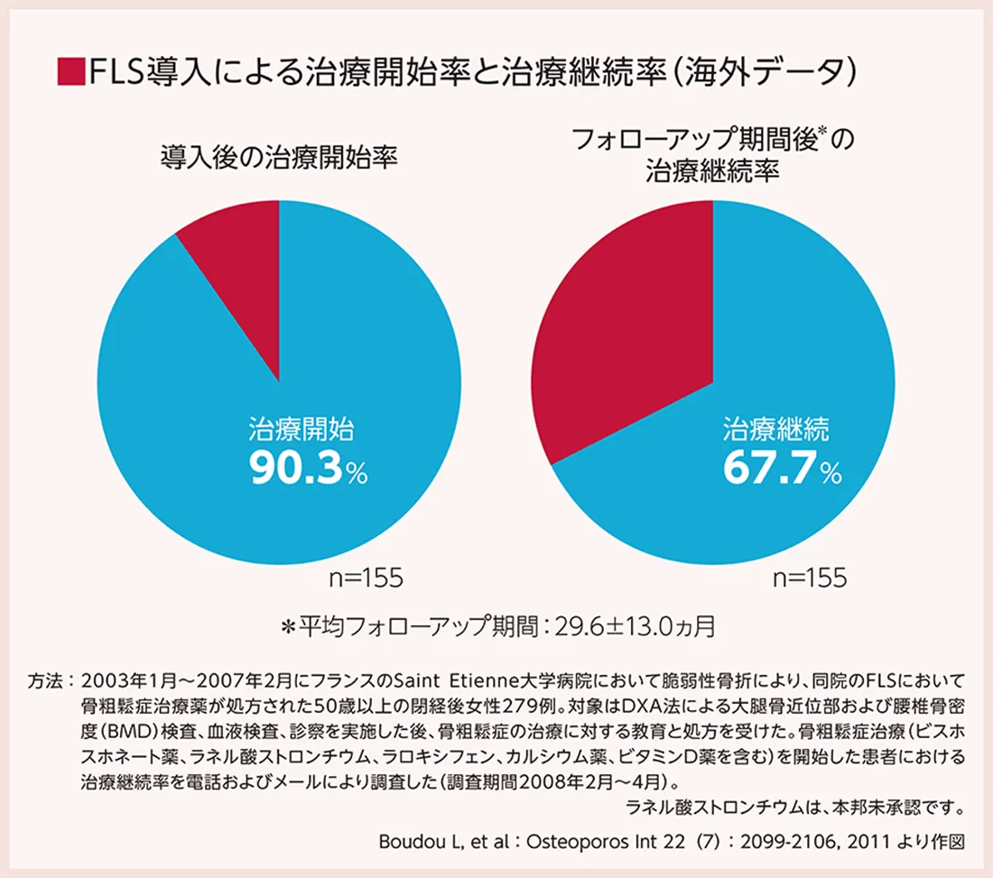 FLSの導入によって骨粗鬆症の治療開始率が上昇することが報告されています。