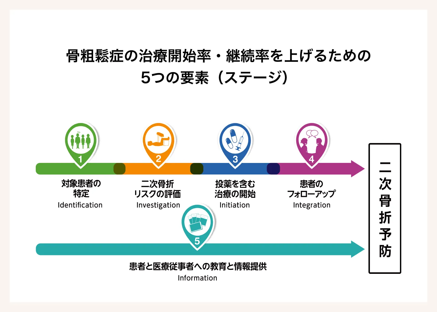 - 骨粗鬆症の病態、骨折との関連性、骨粗鬆症薬物治療の重要性を教育